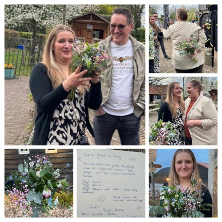 Dinsdag 14 april gingen we een keer niet zwemmen met Senna want ze is zo verkouden en het rommelt zo dat we dat maar een keer overslaan. Dus op ons gemak op gestart een paar boodschappen gedaan en toen naar Anja want die is jarig vandaag. Gezellig zitten kletsen en genoten van alle lekkernijen en rond 12.30 uur weer terug naar huis want Senna moet haar boterham en Rex wil natuurlijk ook naar buiten. Even dus een rondje en meteen de medicijnen opgehaald dan kon Senna mooi slapen. Daarna bij Danielle allerlei klusjes gedaan dus dat kan ook weer van het lijstje. Toen was het weer tijd om naar huis te gaan, eerst een soepje daarna hardlopen althans Ruud natuurlijk en toen genoten van de heerlijke hachee. Desiree was s,morgens al vroeg vertrokken naar Düsseldorf want daar was ze heel de dag op de beurs en had ze afgesproken met 5 klanten. Het was een hele gezellige productieve dag geweest zei Desiree achteraf maar wel altijd vermoeiend zo’n hele dag en dan ook nog op en neer. Daarbij had ze nieuwe schoenen aan dus ook nog eens twee blaren gelopen.