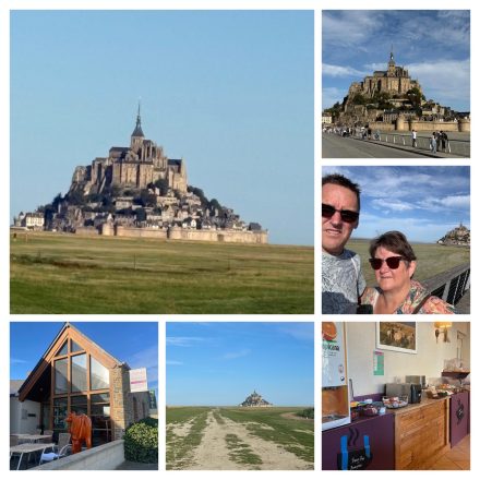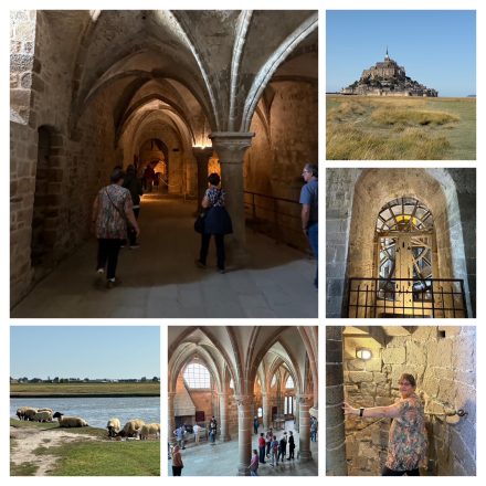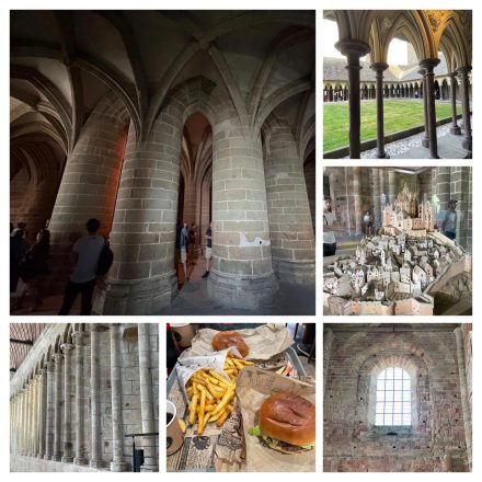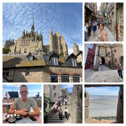Na het ontbijt zijn we aan de wandeltocht begonnen vanuit het hotel door het weiland naar De Mont Saint Michel. Achteraf toch nog verkeerd gelopen dus terug een kilometer korter. Daar aangekomen over de lange wandelbrug kon het beginnen althans eerst naar het toilet ik weet niet wat ik had maar dat was al de vijfde keer. Eenmaal echt binnen hebben we eerst kaartje gekocht voor de Abdij want dat is natuurlijk het mooiste op de st Michel. Daarna ons door de straatjes gewurmd want was het druk en de straatjes smal. Na een tijdje een terrasje aangedaan en later over de stadsmuur verder.