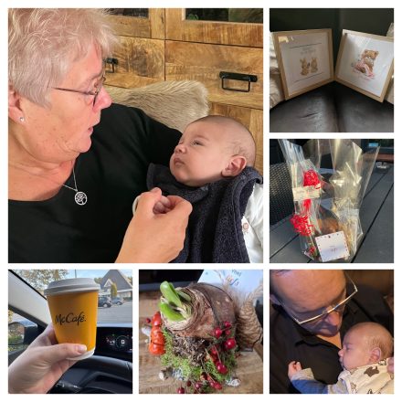 Vrijdag 10 oktober zijn Danielle en Desiree gaan zwemmen dus om 7.15 uur was ik bij Desiree om gezellig op Zayn te passen. Vrijdag is natuurlijk de vrije dag van Rob dus die was bij Senna. Ruud was nog even mee voor zijn werk dus dat vond Zayn wel oké. Daarna wat dingen opgeruimd en toen gezellig met Zayn in de kinderwagen boodschappen gedaan dus dat was een mooi rondje. Na het zwemmen ging Danielle meteen door naar de fysio en Desiree kwam mij en Zayn ophalen om gezellig bij Anja koffie te gaan drinken. Daar werden de kids weer verwend met een mooi geborduurd schilderijtje en van vakantie had Anja een mooi handdoek/deken meegebracht met de naam erop. Senna en Zayn hadden iets voor Anja meegenomen.