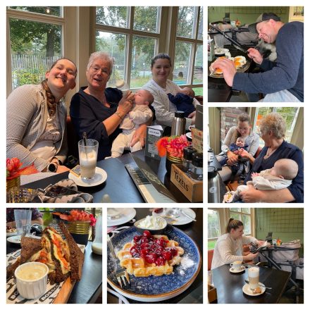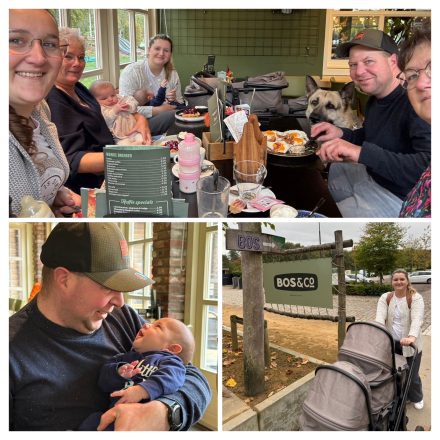 Rond de klok van 10.00 uur waren we bij Bos&co en ook Anja kwam gezellig die kant op want anders drink ik daar natuurlijk altijd op vrijdag koffie. We bestelde weer heel uitlopend van een latte naar een cappuccino en een thee naar een heerlijke luikse wafel met warme kersen na een tosti en een uitsmijter. Daarna nog een rondje en Senna en Zayn ondertussen de fles en daarna natuurlijk de wandeling weer terug. Het was lekker, gezellig en een mooie wandeling.