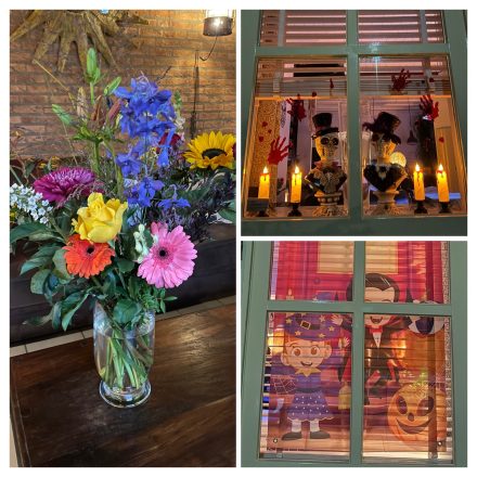 Danielle is al begonnen alvast binnen met de Halloween versiering dan kunnen ze morgen buiten verder.
