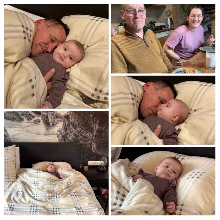 Zondag 19 oktober was ik al op tijd uit bed want Daniellekwam Senna brengen dus samen nog even lekker een koffie op met een eierkoek en toen kwam Desiree Danielle halen om te gaan zwemmen. Toen Senna wakker werd zijn we opa gezellig wakker gaan maken en toen was het tijd voor de fles. Na het zwemmen kwam Danielle weer terug en toen zijn we naar de Oude baan gelopen om samen met Rob en rex een grote ronde te lopen.