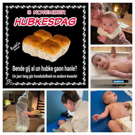 Maandag 3 november was het natuurlijk weer “hubkes” dag. Deze moeten gegeten worden voor het welzijn en deze zijn dan ook speciaal gezegend. Ik denk wel dat het meer in Brabant speelt. Dus eerst naar de bakker daarna even langs Desiree en toen thuis de boel opruimen. Daarna langs Desiree gelopen en samen naar het consultatiebureau om Zayn te wegen en hij was weer goed aangekomen. Daarna door het centrum terug en bij Berna koffie gaan drinken. Desiree is naar huis gegaan en daar de fles gaan geven want Zayn heeft vandaag het huil wat aan. Danielle is heel druk want de loonweek is weer aan de beurt dus dat is toch altijd even stressen. Sávonds op de bank liggen slapen het gaat op zich redelijk maar nog steeds niet de oude. Senna was vandaag weer naar Zolderkids en dat was weer een leuke dag zagen we aan de foto’s en de teksten en gelukkig eet ze ook weer beter.