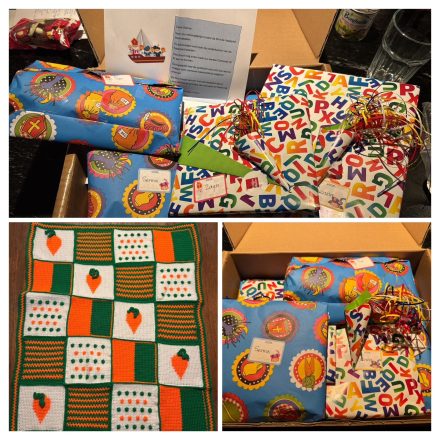 Villa Kakelbont is een hotel en daar slappt dus Sinterklaas een zwarte Piet begeleide ons en vertelde hoe het allemaal ging en daarna nog lekker wat gedronken. Daarna allemaal naar huis en was het weer tijd om te koken, savonds met Ruud nog een rondje gelopen. Bij Danielle was een pakket aangekomen van Reina het baasje van Athos met allemaal cadeautjes van Sinterklaas en daar zat ook een mooie deken in die ze gehaakt heeft speciaal voor Carnaval. Ook Rex mocht weer in de douche dus die was niet blij.