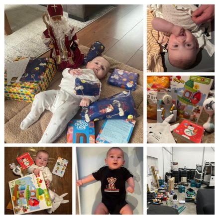Woensdag 3 december ging Rob met Ruud mee naar Tilburg om zijn auto verder te bouwen maar eerst hebben ze Senna afgezet bij opa en oma de Wit. Daar was Sinterklaas geweest dus Senna kreeg heel veel cadeautjes mee naar huis. Ik ben de ochtend begonnen met de weekboodschappen vandaaruit hier nog een paar boodschapjes bij Desiree afgezet en toen thuis alles opgeruimd. Daarna langs Desiree daar gegeten en een rondje met Rex gelopen met de meiden en toen nog wat bezig geweest bij Desiree en Zayn op de foto gezet met kerstverlichting om iets uit te proberen. Hete kip salade gemaakt voor bij Desiree en meteen een voor mijzelf meegenomen. S’middags wilde Zayn niet zijn hoofd omhoog doen toen hij op zijn buik lag dus s’avonds kreeg ik een mooie foto gestuurd dat hij het wel kon maar dat hij ging slapen was wel de mooiste van de dag van Zayn.
