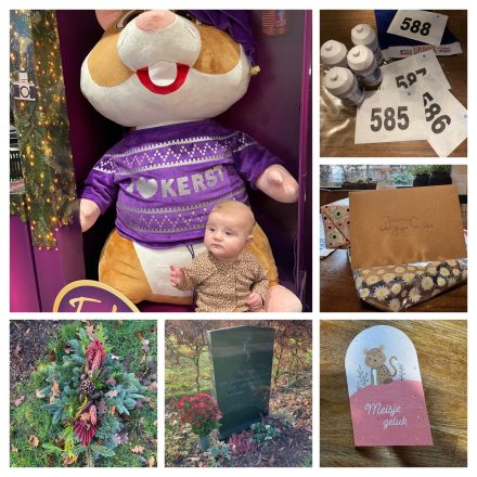 Ondertussen waren Danielle, Senna en ik al wat boodschappen gaan doen. Cadeautje weggebracht waar een meisje was geboren, langs de slager, langs de AVRI, naar het kerkhof bloemen ververst, langs de bakker en toen Rex gaan uitlaten en Senna eten gegeven.