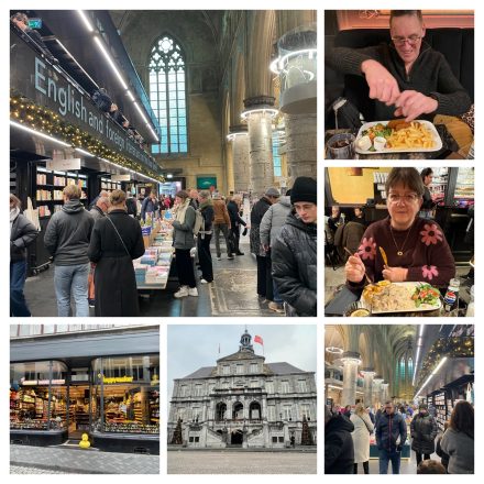 Dinsdag 23 december een klein beetje uitgeslapen en na het ontbijt en het krantje te hebben gelezen en Ruud de garagedeur dicht gemaakt naar de muur toe zijn Ruud en ik aangereden naar Maastricht. Rond de klok van 11.30 uur reden we de parkeergarage in en dat was vlakbij de stad dus we waren zo in de drukte. Het was een leuke kerstmarkt alleen een beetje klein maar dat komt misschien ook dat we Duitsland zijn gewend. Na de markt zijn we een gezellig een restaurantje binnen gelopen om wat te eten en te drinken en daar kreeg ik een heerlijk pasteitje alleen was het veel te groot maar nog nooit zon lekker pasteitje op. Daarna zijn we heel de stad door gelopen en dat zijn heel wat winkels en straatjes heel gezellig maar het werd wel heel druk.