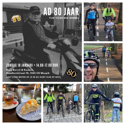 Zondag 18 januari waren we al op tijd uit bed want er werd gefietst. Dus na het ontbijt kwamen Rob, Koen en Sep en om 9.30 uur gingen ze op weg. Ruud was benieuwd of het zou gaan want het was vrij koud en dan met zijn vingers maar het is allemaal gelukt. Onderweg waren ze ook Maickel nog tegengekomen want die reed ze alle drie dus dat was wel leuk. Na het douchen was het natuurlijk tosti’s eten en daarna was het tijd om naar de verjaardag van Ad te rijden in Waspik want die werd 80 jaar. Het werd een leuke middag en gezellig weer wat bij gekletst. Daarna Danielle, Rob en Senna opgehaald en Desiree, Vees en Zayn reden rechtstreeks naar de wok want daar gingen we met zijn allen eten. Het was lekker en gezellig en een mooie afsluiting van het weekend.