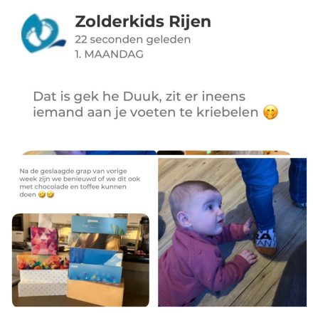 Ondertussen kregen we mooie foto’s en video’s binnen van Desiree want die had een excursie en vergadering in en IJmuiden. Senna had het weer helemaal naar haar zin bij zolderkids dus er kwamen weer leuke foto’s langs. Er zat ook een foto bij van allemaal dozen tissues ze hadden een oproep gedaan om dat het snotterweer was of iedereen anders wat dozen mee wilde brengen maar dat was een grapje maar er was goed gehoor aan gegeven dus nu hadden ze zoiets zou dat met chocolade ook lukken. Desiree was nog redelijk op tijd terug dus we konden nog mooi een klein rondje lopen en toen was het weer tijd om naar huis te gaan en sávonds hebben we het maar niet te laat gemaakt we worden ouder.