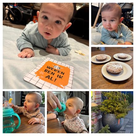 Dinsdag 10 februari eerst wat aangerommeld en daarna naar de Oude baan gelopen want Ingrid kwam vandaag op de koffie dus dat is altijd gezellig. Deze keer kwam ze naar Danielle want die is op dinsdag natuurlijk vrij dus dat is dan wel leuk. Ingrid had ook nog iets lekkers bij voor de koffie dus wat wil je nog meer. In een mum van tijd was het 12.00 uur en ging ze er alweer vandoor wij komen altijd tijd te kort met bij kletsten. Daarna Rex uitgelaten en gegeten en toen nog een paar boodschappen gedaan. Daarna bij Danielle aan de jasjes gewerkt voor Carnaval want die emblemen moeten er natuurlijk wel op en het is zo weekend. Desiree was heel de dag in Oosterhout maar stuurde nog wel een paar leuke foto’s van Zayn door want het was vandaag papa dag. Senna kreeg vandaag voor het eerst een mais dingentje en ze vond het helemaal geweldig en drinken uit een beker om te oefenen.