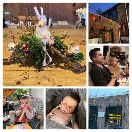 Vrijdag 27 maart eerst thuis wat opgeruimd en daarna een paar boodschappen als de bakker, bloemmist etc. Even bij Desiree langs en daarna bij Rob en toen door naar Anja. Die werd verwend door Senna en Zayn met een paasstukje voor al die verwennerijen die Anja altijd doet. Na de koffie naar de Oude Baan gereden voor de lunch en daarna kwam gezellig Berna daar een bakkie koffie doen. Om 15.00 uur na de fles zijn Rob, Senna en ik nog een ronde gaan lopen want Senna sliep zo lekker en toen zat de dag er alweer op. Ruud opgehaald bij een klant waar ik hem smorgens had afgezet en dan lekker weekend houden met als eerste het Nederlands elftal kijken en dat deden Vees en Zayn ook.
