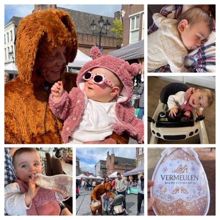 Zaterdag 4 april eerst een beetje uitgeslapen, krantje gelezen met een bakkie koffie en toen is Ruud naar Bjorn gegaan om de voorkant van zijn auto te laten poetsen want die had wel wat geleden met de motor uit en inbouwen bij dat bedrijf. Ik was de bestellingen ophalen en daarna doorgelopen naar de Oude baan. Danielle had met Rex uitlaten een ei gevonden van schoenenwinkel Vermeulen dus die heeft al een prijs binnen gehaald vandaag. Deze winkel had eieren verstopt in Dongen met een waardebon. Daarna zijn we naar Den Bosch gereden om daar eens een keer te gaan winkelen. Ik moet zeggen een hele leuke stad. We zijn begonnen met lunchen want Senna moest ook de fles en daarna de stad in. Op het plein kwamen we de paashaas nog tegen dus dat is altijd leuk. Danielle is geslaagd met kleren voor de bruiloft van Babs en voor de bruiloft van Desiree dus die is ook klaar en ook voor Senna hebben we twee mooie jurken gevonden. Het was allemaal veel later geworden dan dat we hadden verwacht dus de verjaardag van Giel en Max kwam wat in het gedrang maar na het eten zijn Ruud en Rob nog even geweest en kon Senna gewoon naar bed.